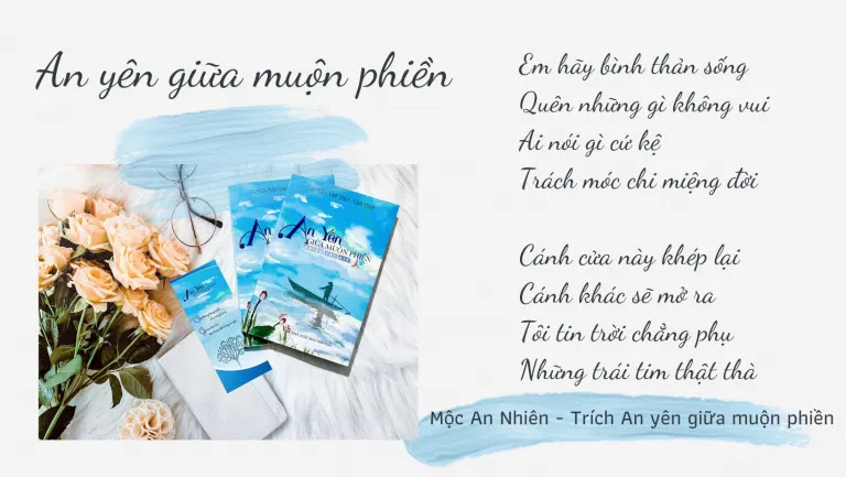 Hãy sống chậm, hãy nhẹ nhàng ngẫm nghĩ, “AN YÊN GIỮA… MUỘN PHIỀN”, một luồng gió mới của nhóm Cảm xúc 365, một cái nhìn khác về những ồn ã của cuộc đời. Chỉ mong vậy thôi, chỉ mong những thứ tuần tự theo từng mùa, chỉ mong những cuộc trải qua chưa từng hằn trong ký ức… để rồi cứ thế an yên, để rồi cứ thế sống mặc muộn phiền.